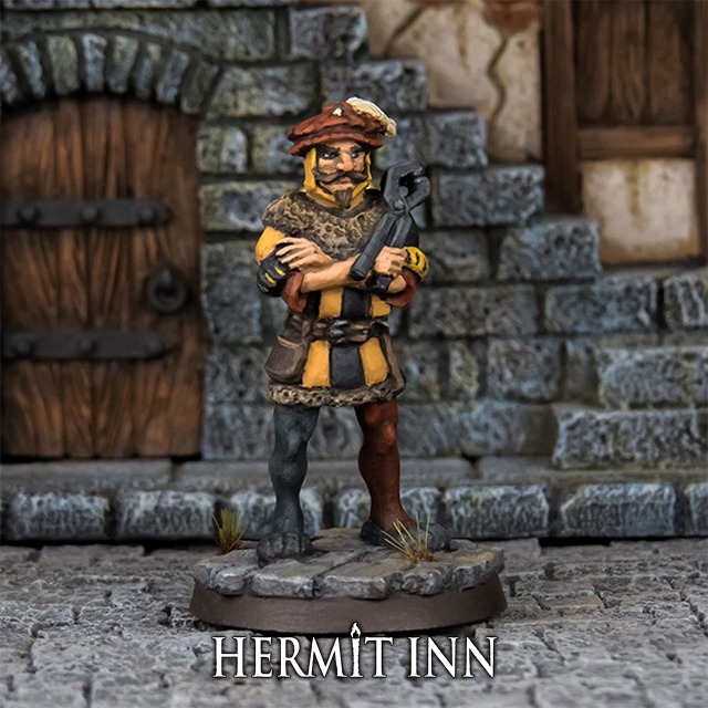 マンフレッドは、跳ねるクジャク亭を最近よく訪れる“新規常連客”の一人だ。顔こそ恐いが、話してみるとそれほど悪い奴でもない。賭け事が好きで、オリヴィエとカード勝負を楽しんでいる。今のところ、勝ち負けは半々のようだ。実際のところ、マンフレッドは単なる賭け事好きの客ではない。彼は目端のよく効く“下調べ屋”である。放火にしろ盗みにしろ殺しにしろ、マンフレッドの情報は計画づくりに必須なのだ。親分のスヴェンに言われ、跳ねるクジャク亭の内情に精通すべく、毎晩のように訪れている。 【商品仕様】メタルミニチュア1体入り (*25ミリベースx1付*) 【レビュー】ハーミット・カウンシル記事「ダンケルドルフの裏社会」 https://note.com/hermitinn/n/nc120522b5467 をご覧ください。 【デザイン】ソニー・バンドガード 【メーカー】ダンケルドルフ・ミニチュア *接着には瞬間接着剤をご使用下さい* *実際の製品は未塗装です。ペイントには、水溶性カラー「コートデアームズ」のご使用をお勧めします* *写真の製品と実際の製品は仕様が異なる場合があります*