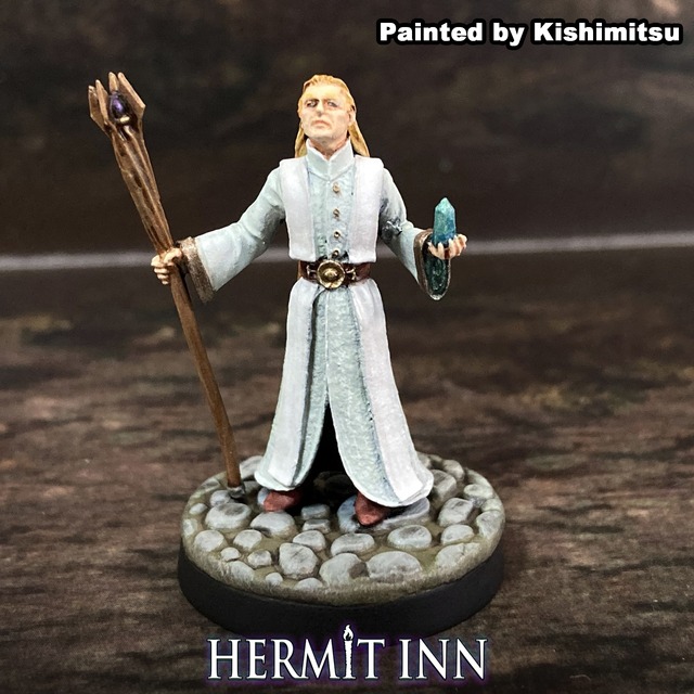 長命ゆえに、戦士と魔術師という二つの道に通じた魔法剣士。左手にロングソードを携え、右手にはワンド(笏)を持っている。使う魔法体系にもよるが、魔法の多くは杖や笏を介して発動される場合が多い。背中には分厚い魔導書を背負い、腰には巻物の入ったスクロールケースをぶら下げている。 【商品仕様】メタルミニチュア1体入り 25ミリプラベース x1 付(上写真は石畳メタルベース使用) 【メーカー】アザーワールド・ミニチュア 【デザイン】ジョン・ウインター *組み立てが必要な場合があります。接着には瞬間接着剤をご使用下さい* *実際の製品は未塗装です。ペイントには、水溶性カラー「コートデアームズ」をご使用下さい* *写真の製品と実際の製品は仕様が異なる場合があります*