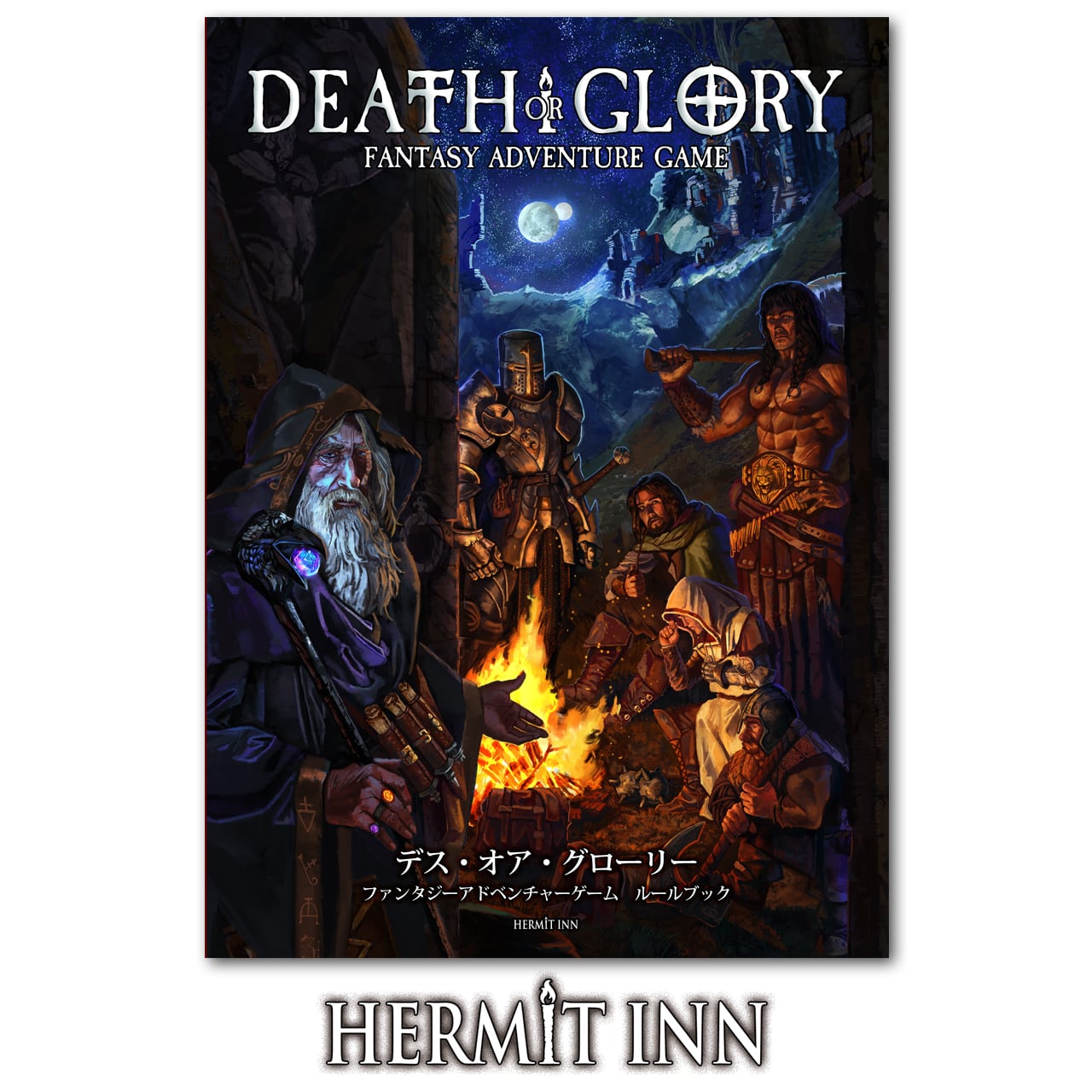 1人用ファンタジーアドベンチャーゲーム『デス・オア・グローリー』を遊ぶ為に必要なゲームセット。本製品は第三刷で、2023年3月1日以前に発表された「ルールブック」「ヒスイの髪留め」への全エラッタが反映された最新版です。