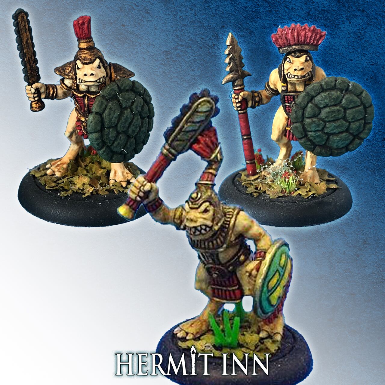 【商品仕様】メタルミニチュア3体入り(羽つき盾を持つ1体は戦士長です)