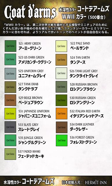 コートデアームズ:第二次大戦カラー(500番台)全37色のフルセット。