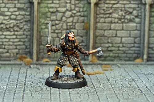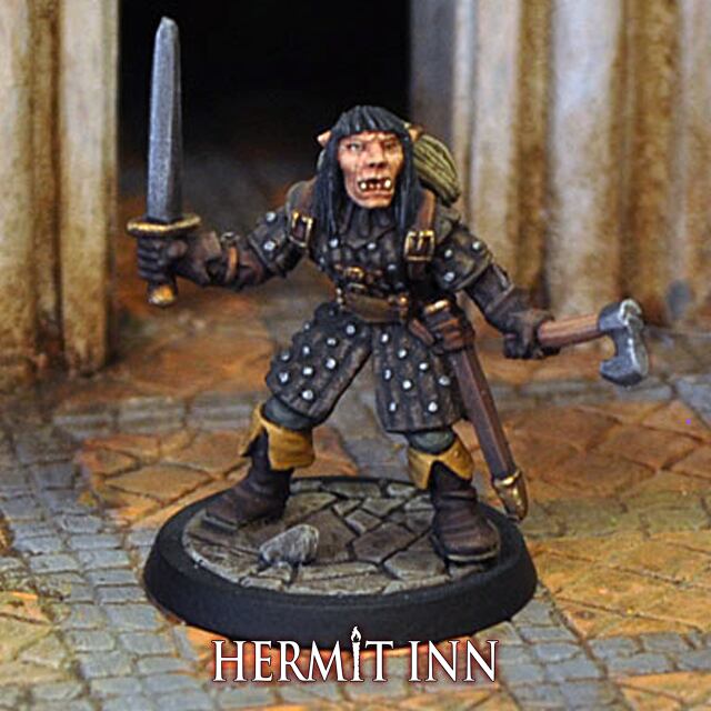 ハーフオークの女戦士(剣と斧)