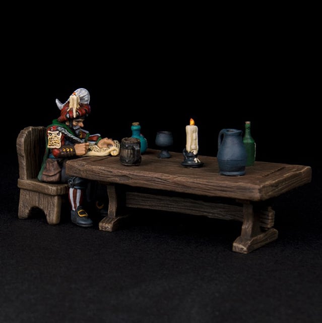 飼い猫のアドラーを連れ、よりによって『跳ねるクジャク亭』の騒がしい酒場で仕事をするのが好きな変わり者の書記。