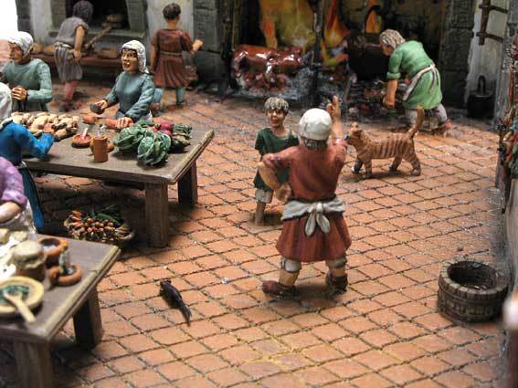 パン焼き職人、桶を運ぶ青年、ガチョウの羽をむしるバアさん、手伝いをサボって遊ぶ子供、説教する婦人&全く反省していない子供、不機嫌な料理人などなど。